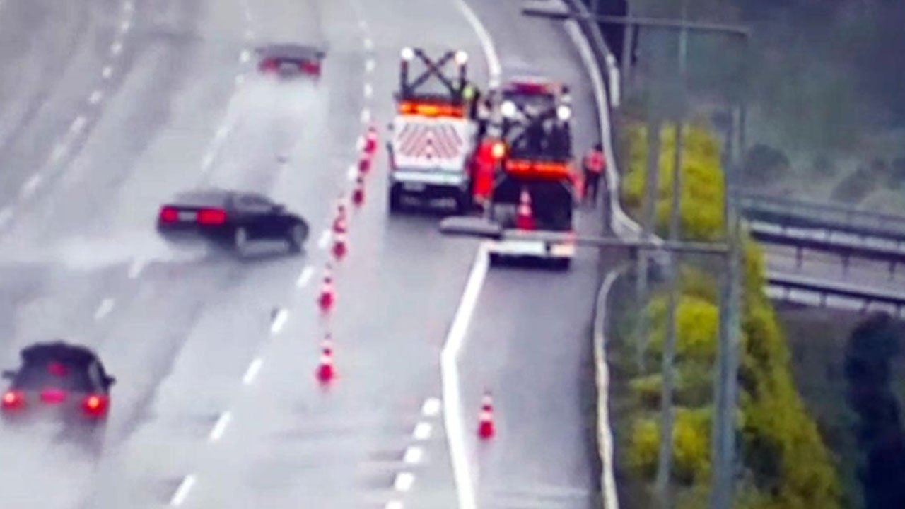 Otomobil otoyolda karayolları ekibine çarptı